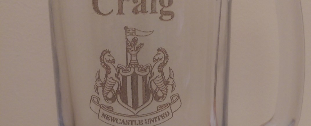 Small Tumblers, Pint Glasses and Tankards all engraved to the customers requirements. Please note: there is restrictions on the shape of the glass i.e. it needs to be relatively straight.